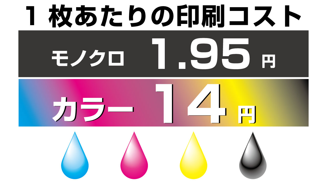 トナーコストはカラー@14円 モノクロ1.95円。ドラム代は5年保守に含まれています。
